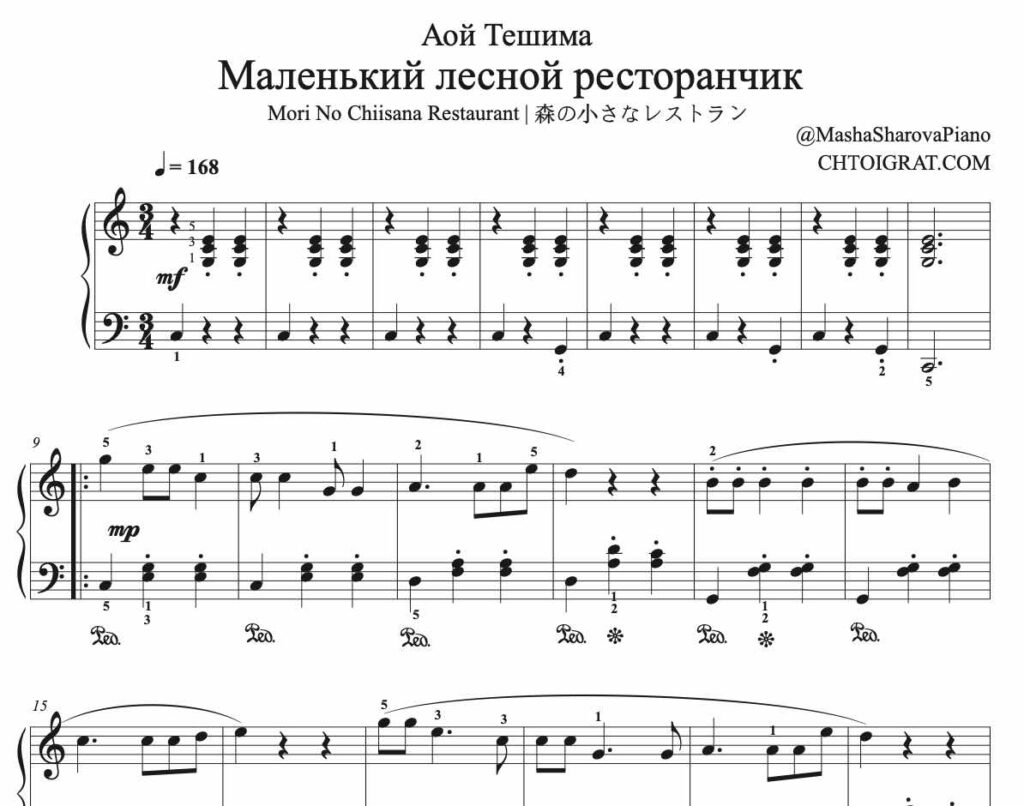 Аои Тешима — Маленький лесной ресторанчик (Mori No Chiisana) | несложные ноты на белых клавишах