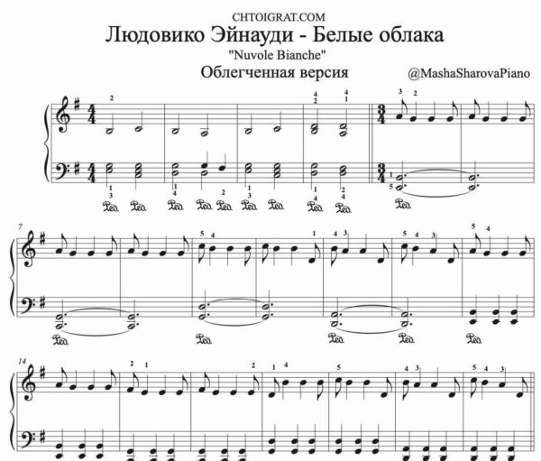 Людовико Эйнауди — Белые облака («Nuvole bianche») на белых клавишах | облегченное фортепиано для подростков